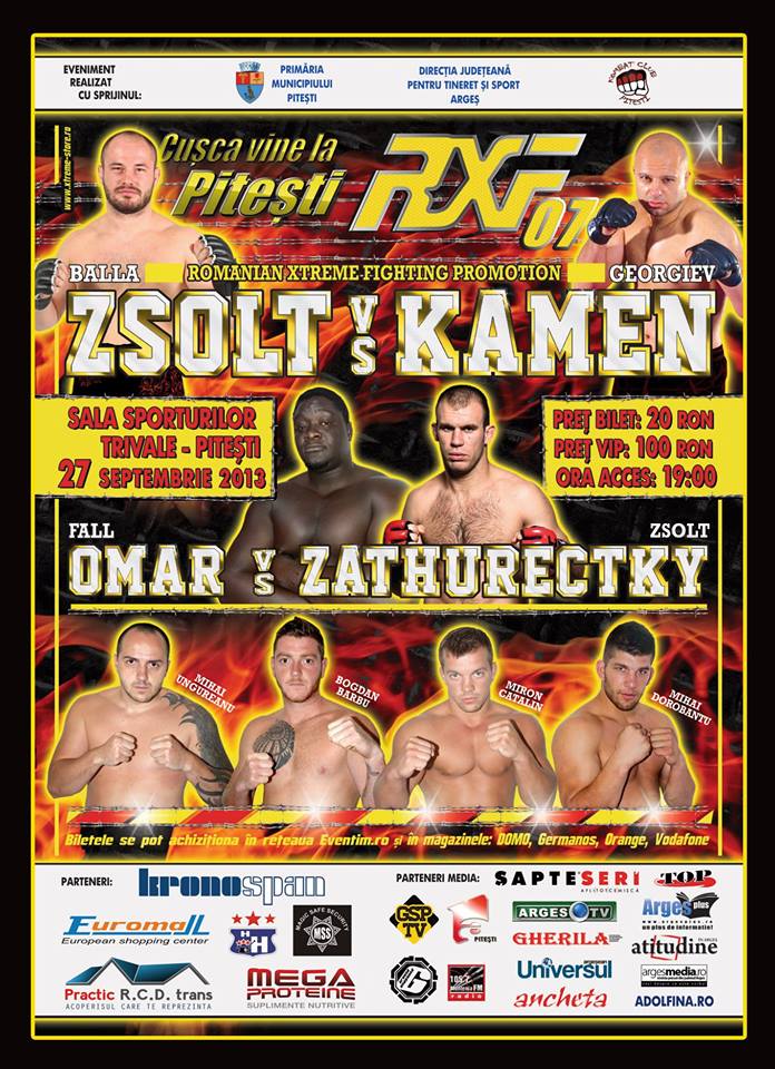 Dinu Bucalet (Absoluto MMA) si Bogdan Nut (Tengu Absoluto Cluj) au castigat printr-o maniera impresionanta meciurile disputate luni, 16 februarie in gala de Arte Martiale Mixte (MMA), RXF Fight Night. Dinu Bucalet, antrenat de Tudor Mihaita si Ionut Atodiresei (Pitbull Division), a luptat impotriva Campionului European de Sambo, Dumitru Bostan. Dupa trei reprize cu multiple rasturnari de situatie, Dinu a reusit sa-si stranguleze adversarul, adjudecandu-si o victorie extrem de muncita. Parerea unanima a celor prezenti a fost ca sportivul nostru a facut meciul serii!