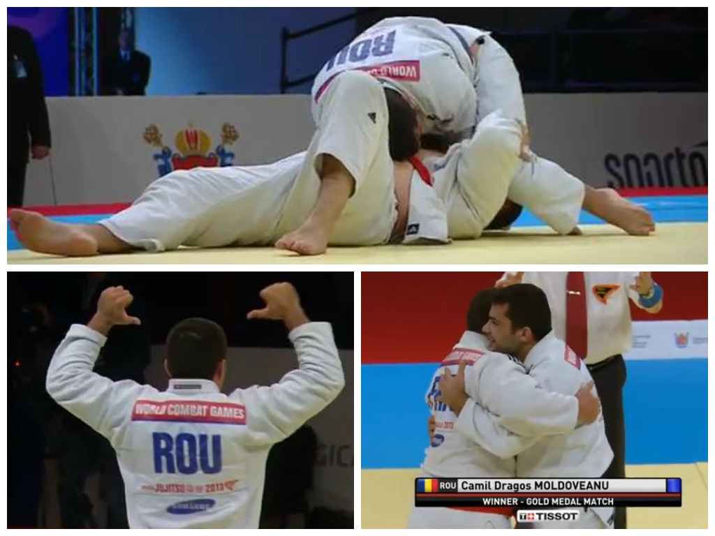 Sportivul Absoluto BJJ, Camil Moldoveanu, a reusit sa castige astazi medalia de aur in competitia de Ju-Jitsu (proba de Ne-Waza), in cadrul World Combat Games. Evenimentul, considerat „Olimpiada Sporturilor de Contact”, a debutat pe 18 noiembrie si se va incheia maine, pe 26 noimebrie. Sporturile selectate de oragnizatorul, Sport Accord, au fost: Aikido, Box, Judo, Ju-Jitsu, Karate, Kendo, Kickboxing, Lupte, Muaythai, Sambo, Savate, Scrima, Sumo, Taekwondo, Wushu. Sportivii au participat in urma unor competitii prealabile de calificare.