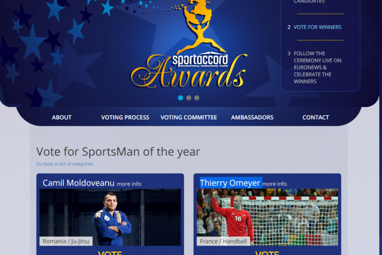 Un roman printre cei mai mari sportivi ai lumii! Voteaza-l pe Camil Moldoveanu, in lupta pentru titlul „Sportivul Anului SportAccord”. Sportivul Absoluto BJJ, e in competitie stransa cu nume mari precum: Thierry Omeyer (handbal), François Pervis (ciclism) sau Gabriel Medina (surfing)!