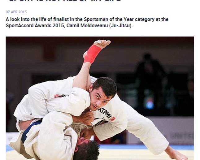 Pe 23 aprilie, la Sochi (Rusia), intr-o ceremonie transmisa in peste 100 de tari, SportAccord va desemna sportivul anului. Romania este prezenta in ultimii 4 finalisti, prin sportivul Absoluto BJJ, Camil Moldoveanu, ce reprezinta IJJF (International Jiu Jitsu Federation).