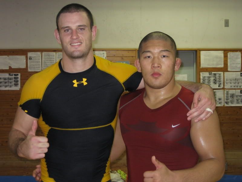 It was great watching him spar with the other guys cos everytime he got a big throw he’d scream like the Judo guys do when they throw for Ippon, which is way out of place on our wrestling mat but he didn’t seem to mind and I thought it was great 🙂 Screaming stuff like „AAAIIII!!! SHYAAAAAH!!!” Or „YOISHAAAAAH!!!” And during sparrign with me he kept saying „SHYAAH!!” which is kinda like a fighting cheer of encouragement to yoruself. Good stuff 🙂