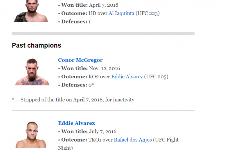 Acesta a incercat sa-si recapete centura de campion, insa Khabib Nurmagomedov a fost de neoprit si l-a submis pe superstarul irlandez in Runda a 4-a printr-un neck crank necrutator. Daca ne uitam la istoricul campionilor UFC la Lightweight, vom observa ca Khabib si-a aparat doar o data titlul, impotriva lui McGregor, iar Eddie Alvarez, campionul anterior lui Conor, nu a reusit sa securizeze centura niciodata.