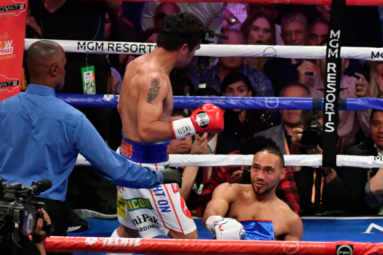 Pacquiao knocks down Thurman 😳 #PacThurman pic.twitter.com/0RMZVLYwoS